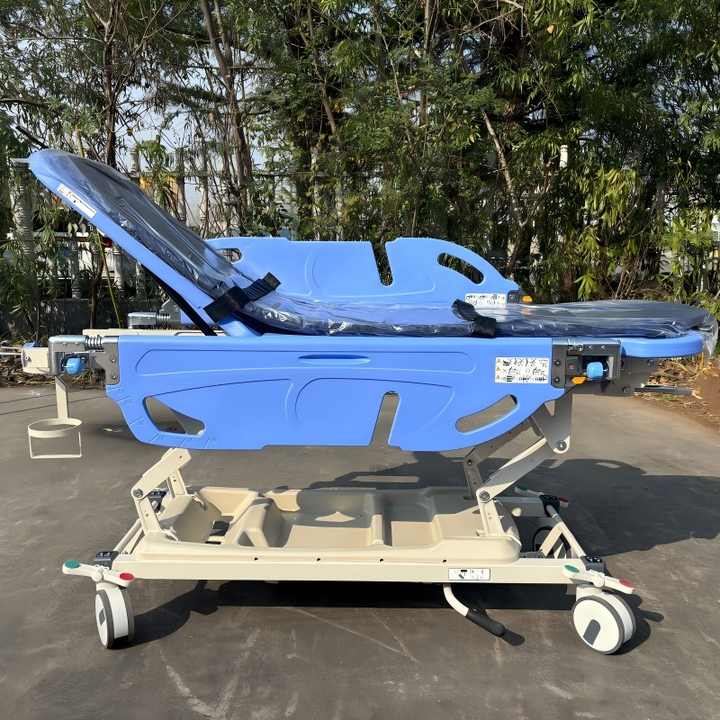 Chariot de transfert médical de luxe avec garde-corps rotatif - Chariot de transport de patients en acier inoxydable pour hôpital, clinique, soins à domicile