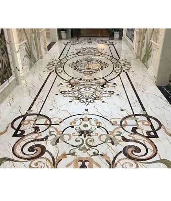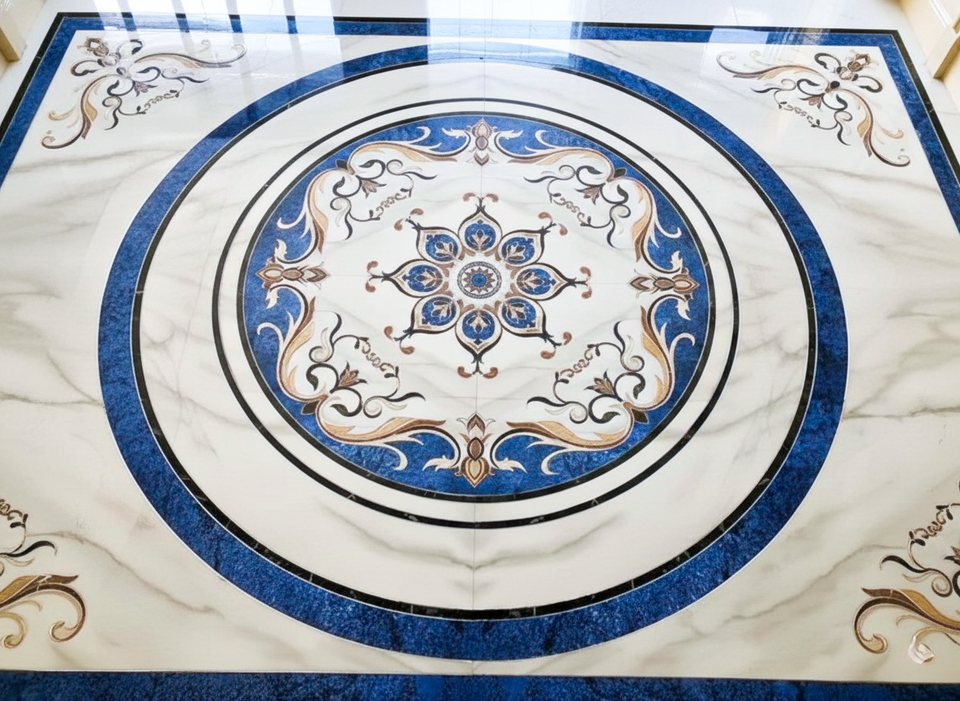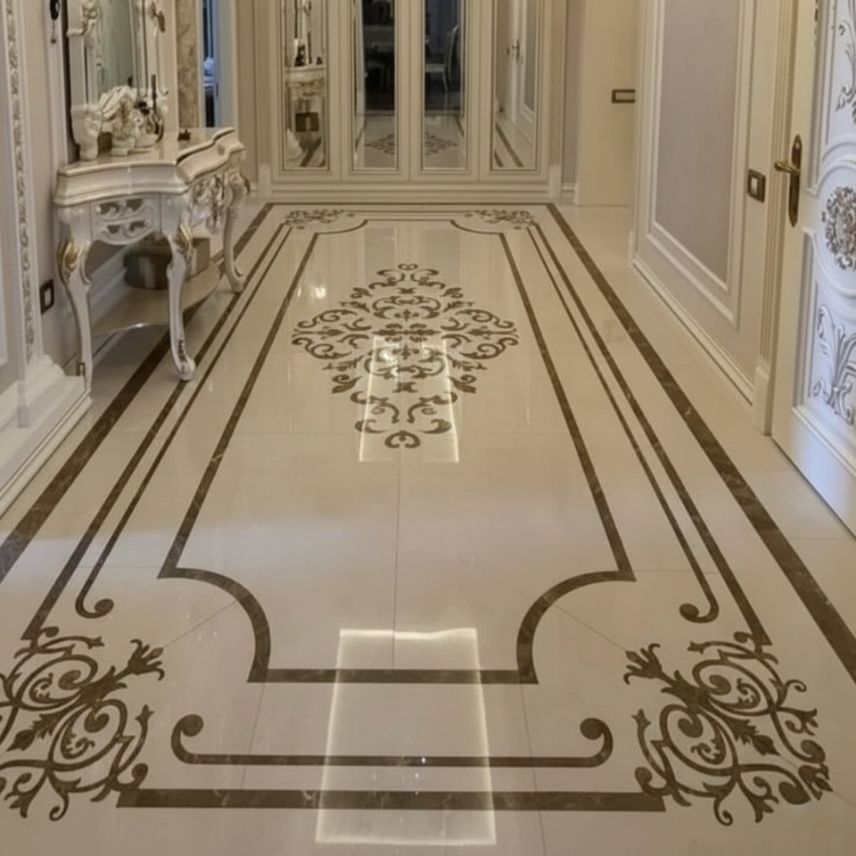 Carreaux de sol décoratifs de luxe en laiton méditerranéen incrusté, faits à la main, antidérapants et imperméables pour hôpitaux et salons