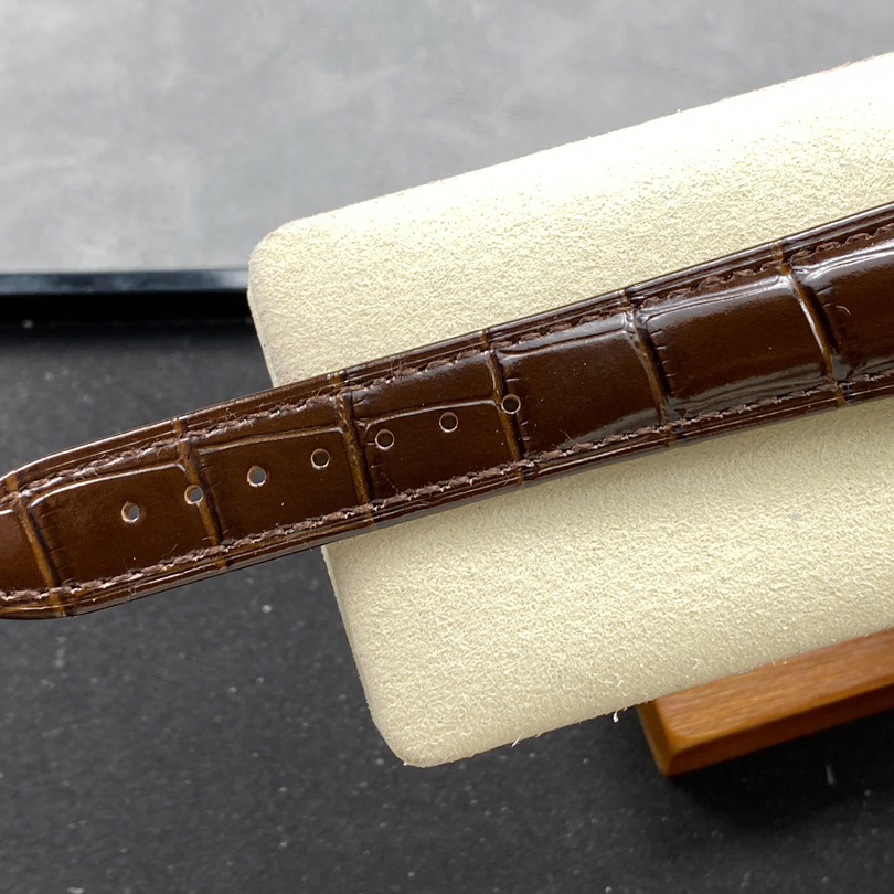 Montre automatique de luxe pour homme, boîtier en or rose, cadran argenté, aiguilles bleues, calendrier annuel, phase de lune, bracelet en cuir