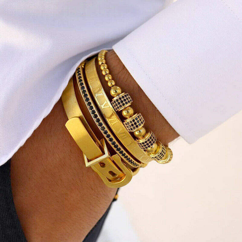 Ensemble de 4 Bracelets de luxe pour hommes, breloques en macramé, en acier inoxydable, numérique romain, manchette, boucle