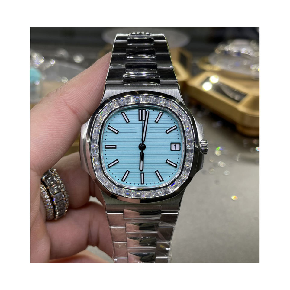 Montre automatique de luxe pour homme avec mouvement NH35, cadran style diamant et bracelet en acier inoxydable
