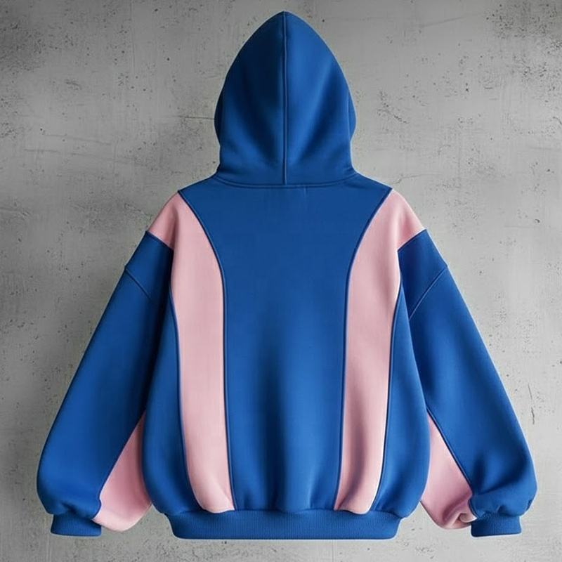 Sweat à capuche pour homme de luxe, brodé, délavé, avec design contrasté en blocs de couleur, doublure et applique brodée, style ample