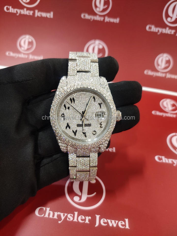 Montres de luxe en moissanite entièrement glacées pour hommes, style hip hop bling avec bracelet en acier inoxydable disponible pour elle et lui