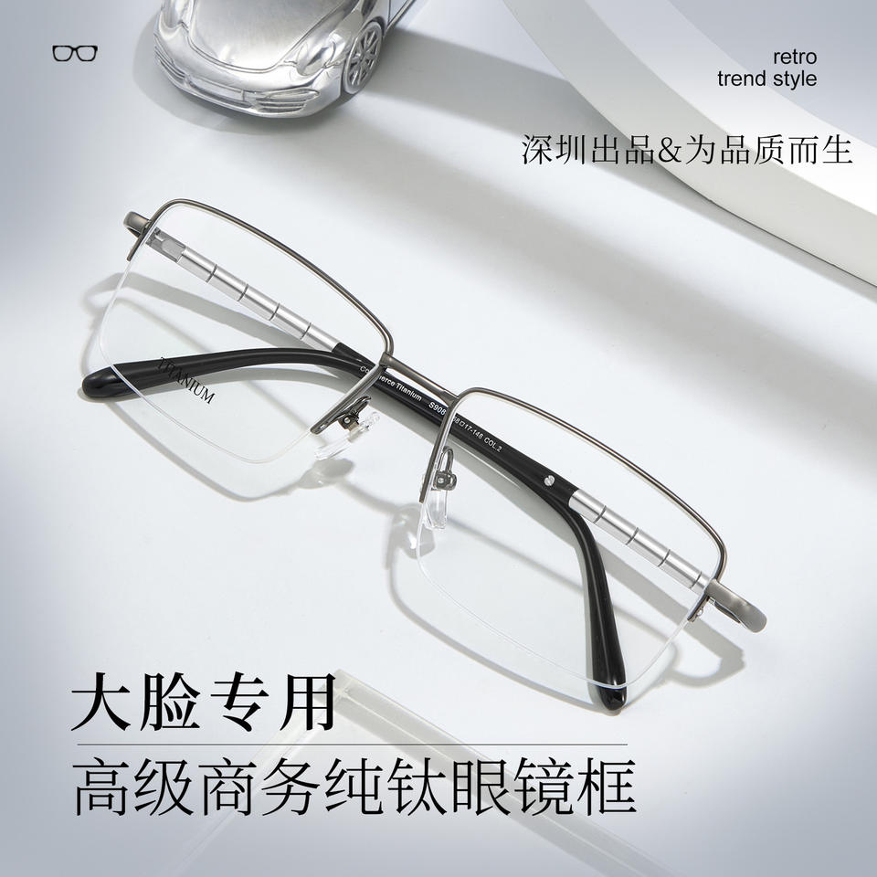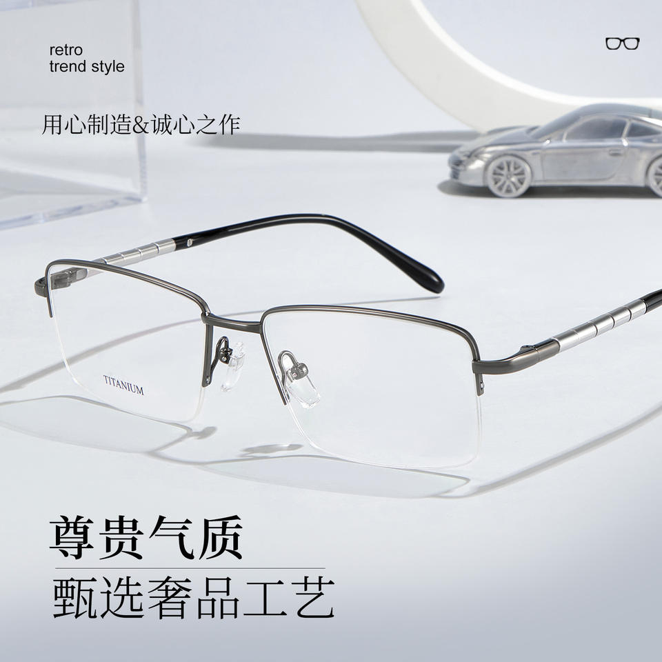 Lunettes de vue de luxe pour hommes, demi-cerclées en titane, monture rectangulaire, verres en résine légers, vente en gros Danyang S9085