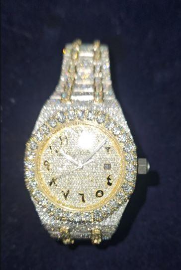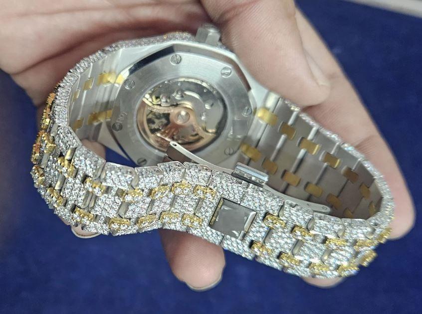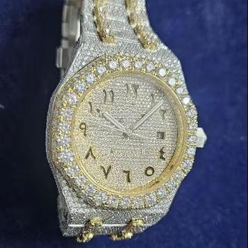 Luxury Men's Iced out Watch with Moissanite Brilliant Diamond Rectangle Steel Movement Stainless Steel Band Box Packing