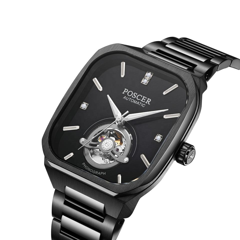 Luxury Men's Square Hollowed Stainless Steel Automatic Mechanical Watch High Quality Best-Selling Fashion Watches