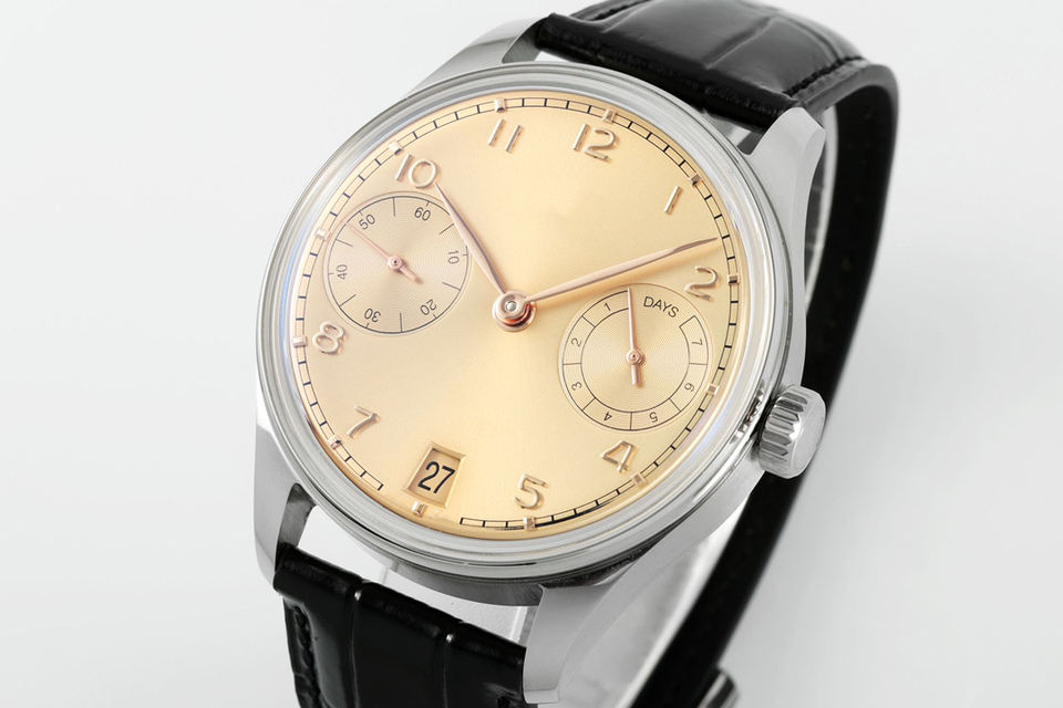 Luxury Men's Stainless Steel Watch 43mm Dial with Pointer Date Display Shanghai Movement Leather Strap Wristwatch