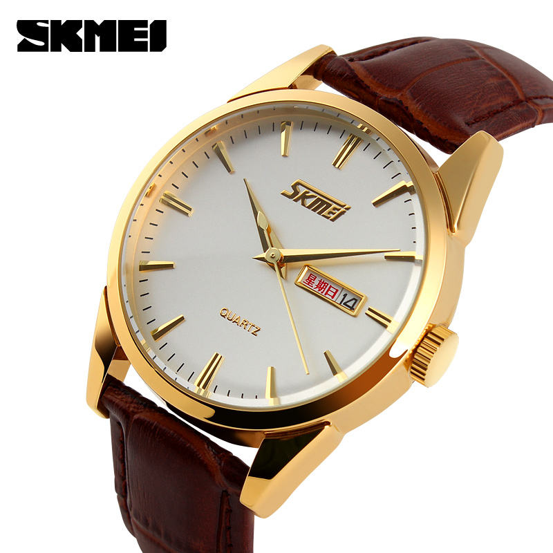 SKMEI — montre de luxe en cuir véritable pour homme, accessoire de bonne qualité fabriqué en chine, bracelet en Quartz, 9073