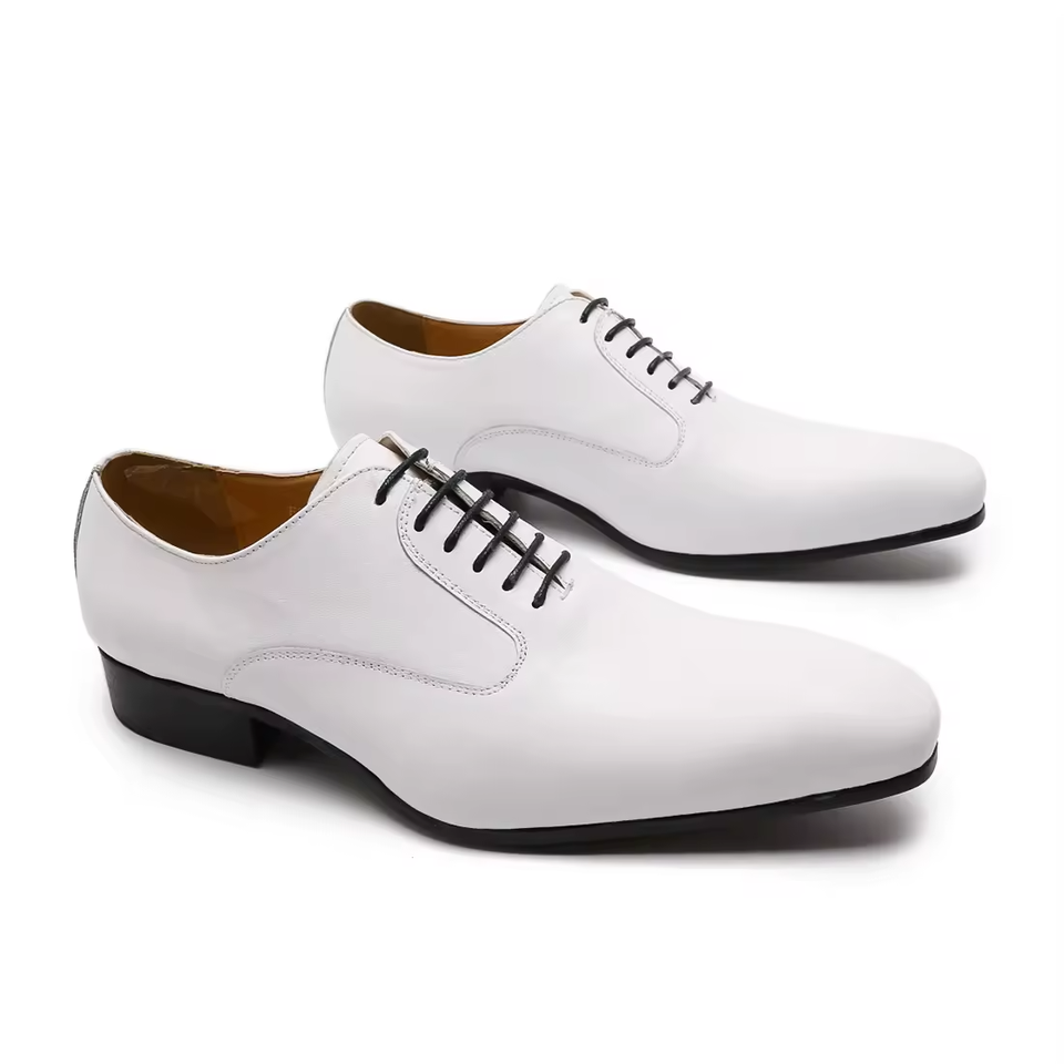 Luxury Men's Waterproof Evergreen Oxford Shoes White Black Brown Formal Lace-Up Pointed Toe Leather Flat Office Wedding Shoes