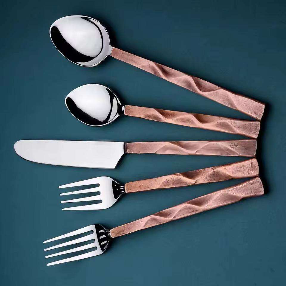 Ensemble de couverts en métal de luxe comprenant fourchette, cuillère et couteau pour les mariages, la restauration, les buffets d'hôtel et l'utilisation quotidienne à table