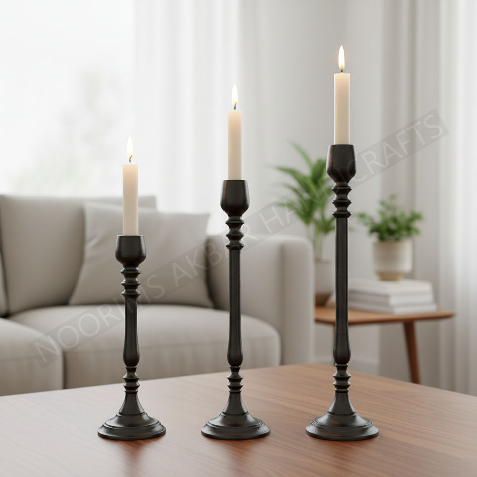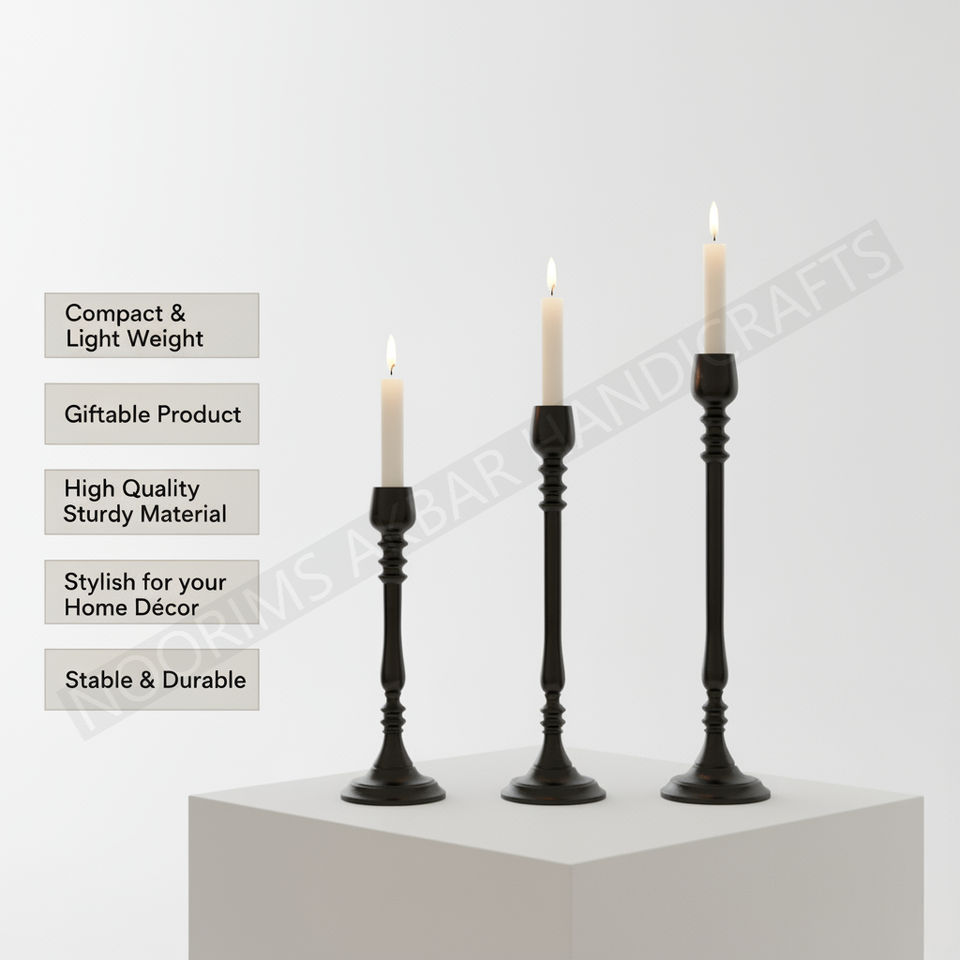 Luxury Metal Decorative Aluminium Candle Pillar Holder Black Color Stand Living Room Wedding Home Decor Export Quality