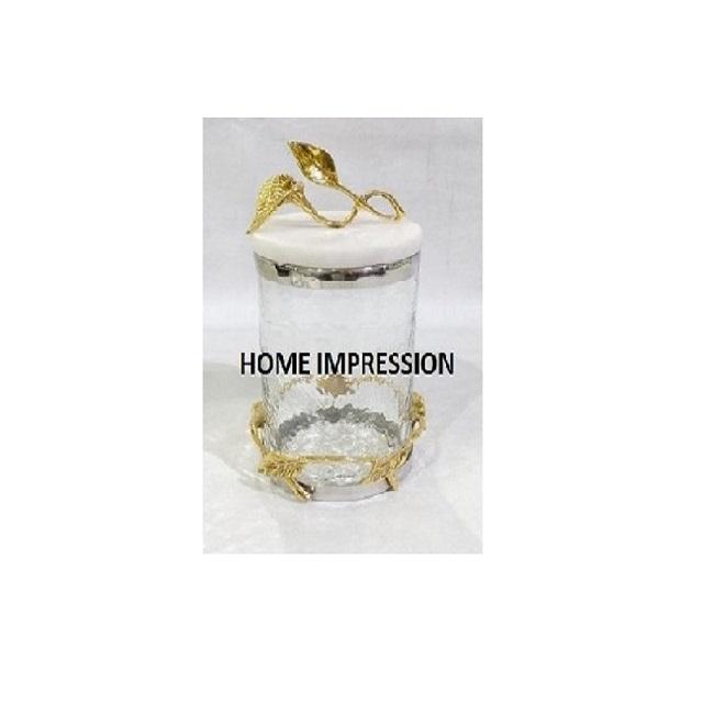 Boîte de conserve de luxe en métal et verre avec plateau fantaisie argenté de service bouteille de stockage pour ustensiles de cuisine design moderne de table fait à la main