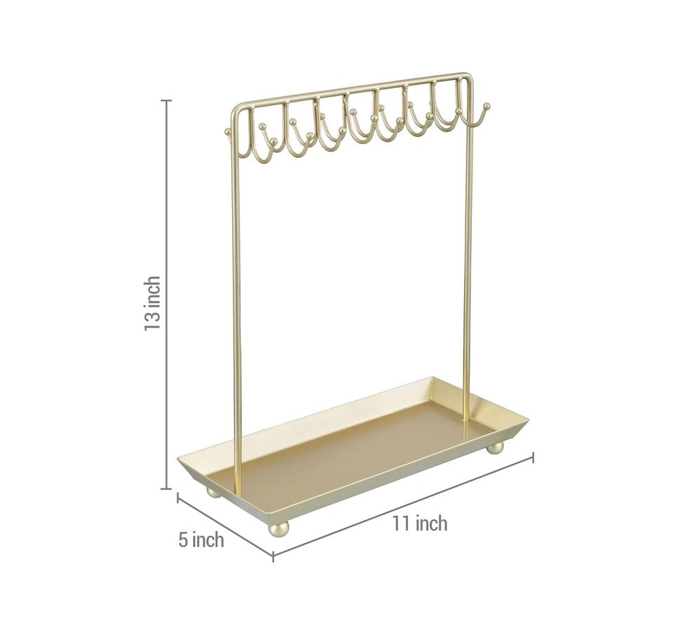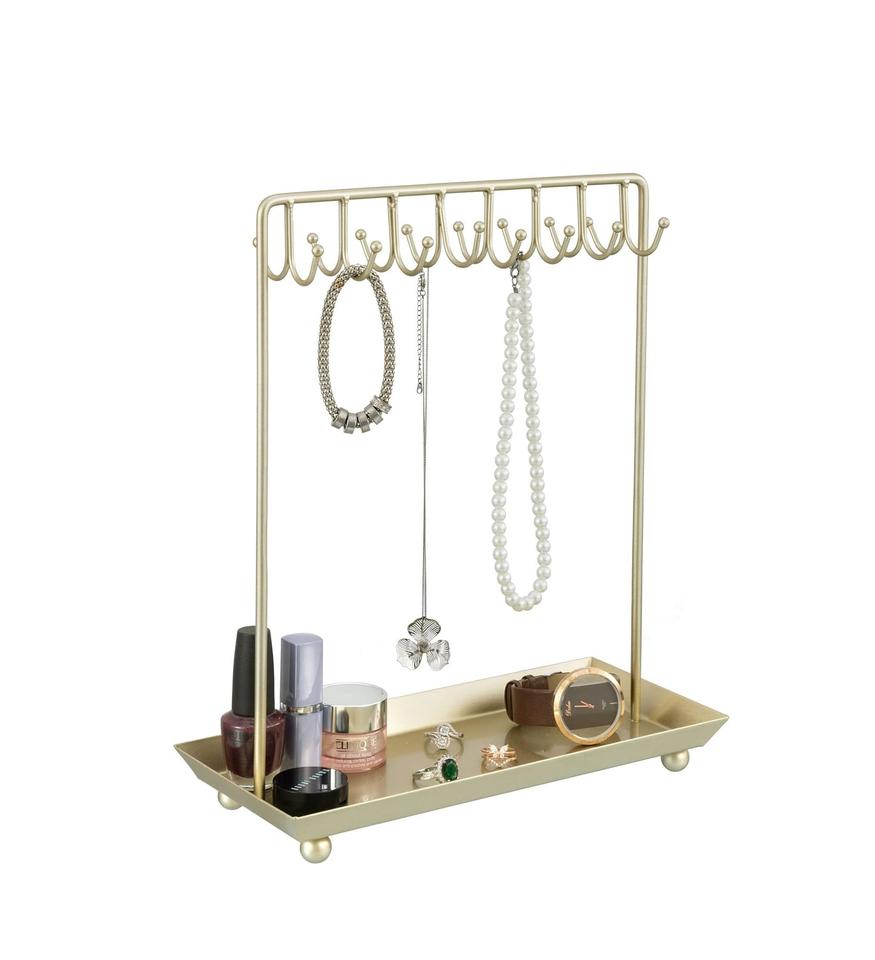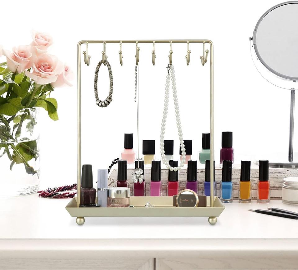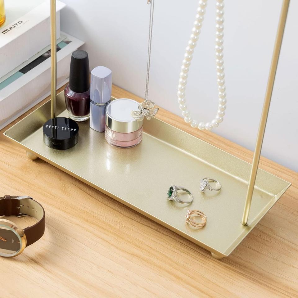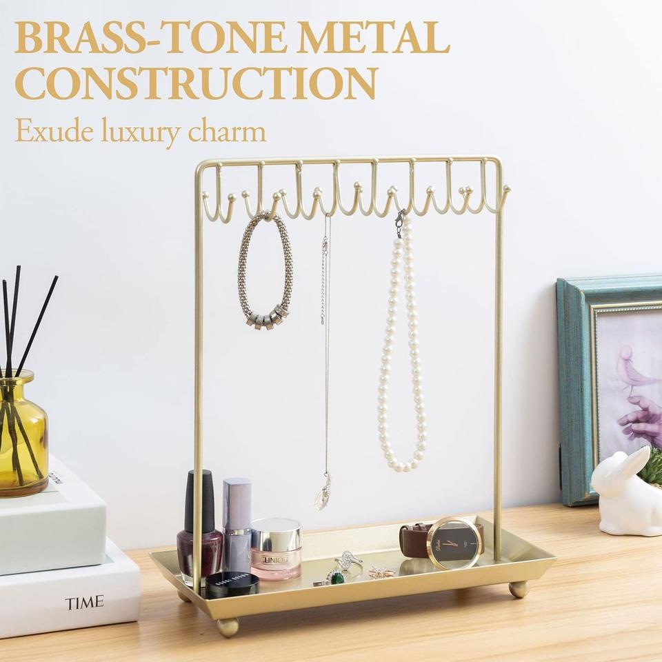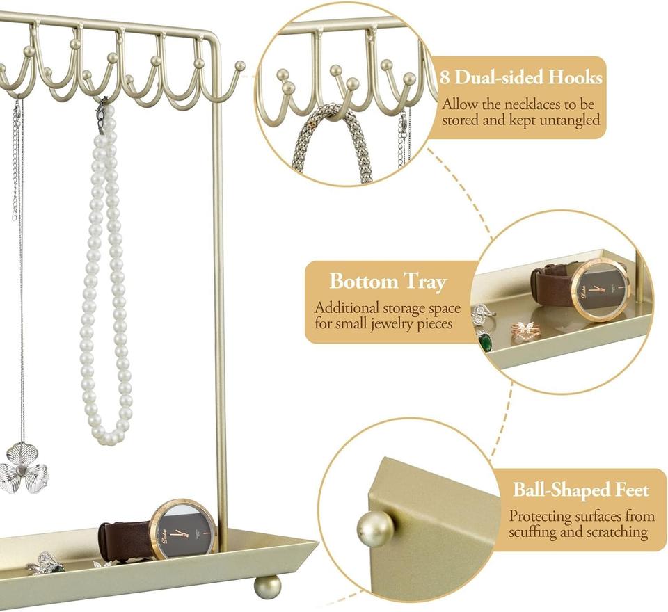 Présentoir à bijoux de luxe en métal avec plateau organisateur multi-crochets pour colliers – Solution de rangement élégante et peu encombrante pour coiffeuse