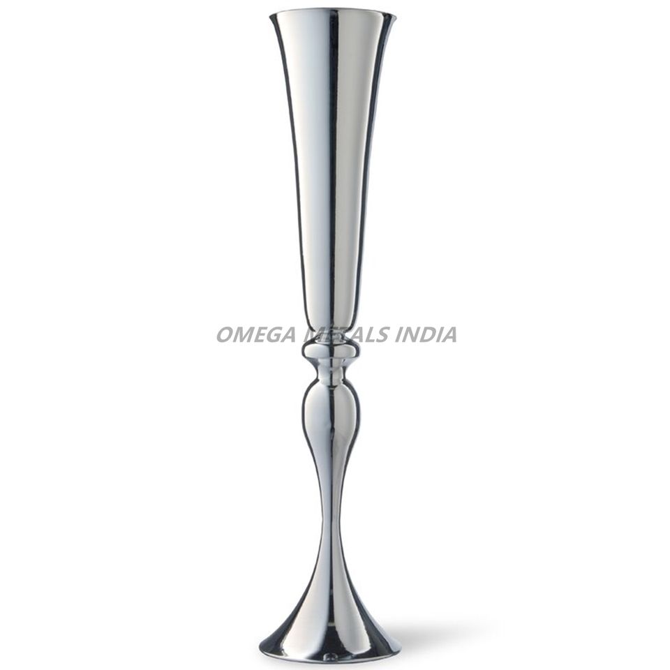Luxury Metal Vases in Polished Silver Color Featuring a Unique Elegant Shape with Curved Design for Sophisticated Home Decor