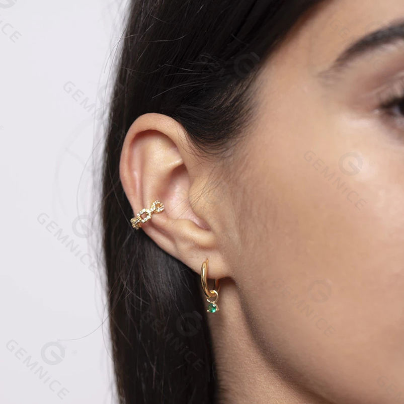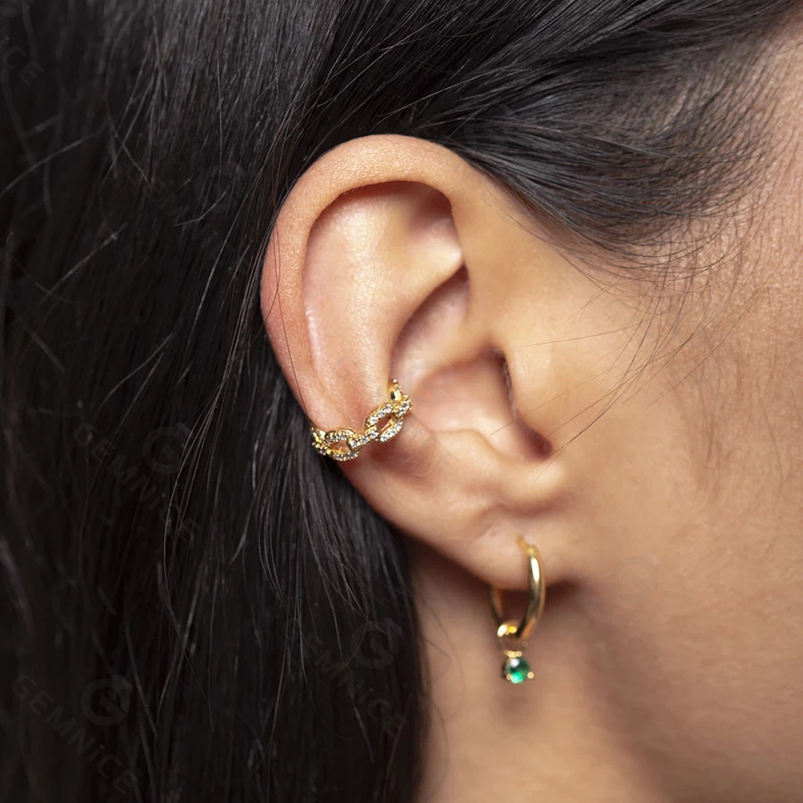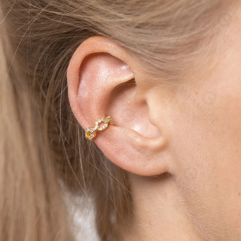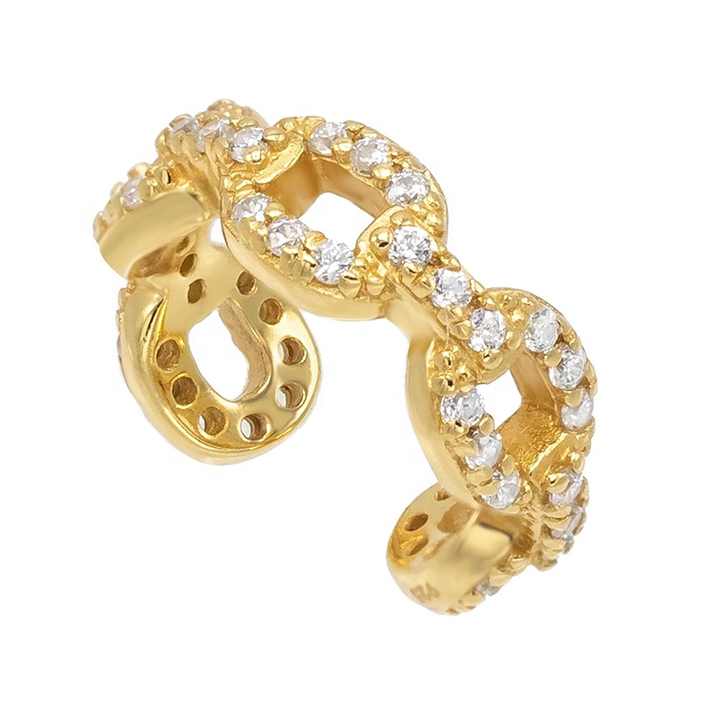 Luxury Micro Pave Diamond Curb Link Ear Cuff Earrings 18k Gold Plated