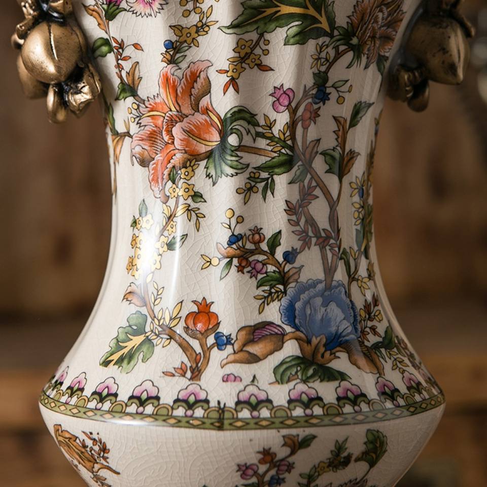 Vase en céramique chinois de style moyen-orient de luxe, vase à fleurs fait main, décor de vase de salon à la maison