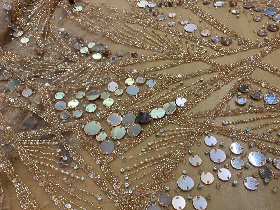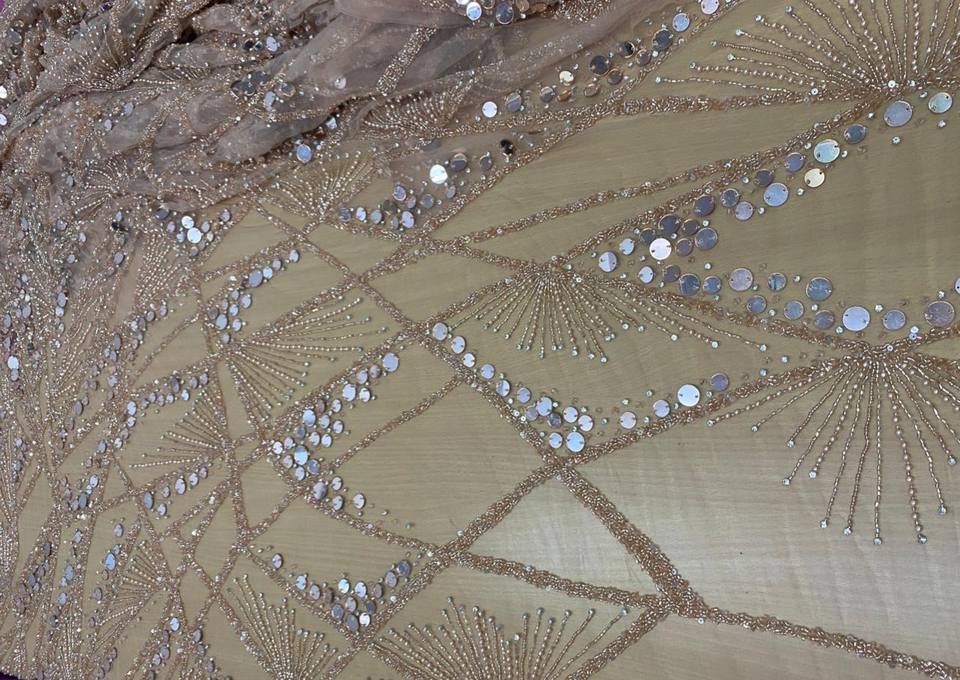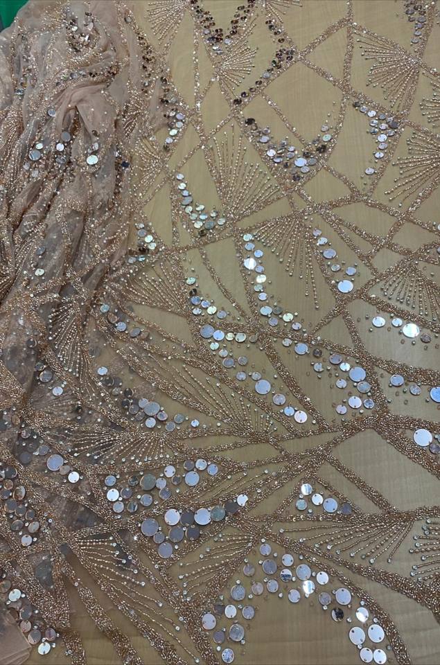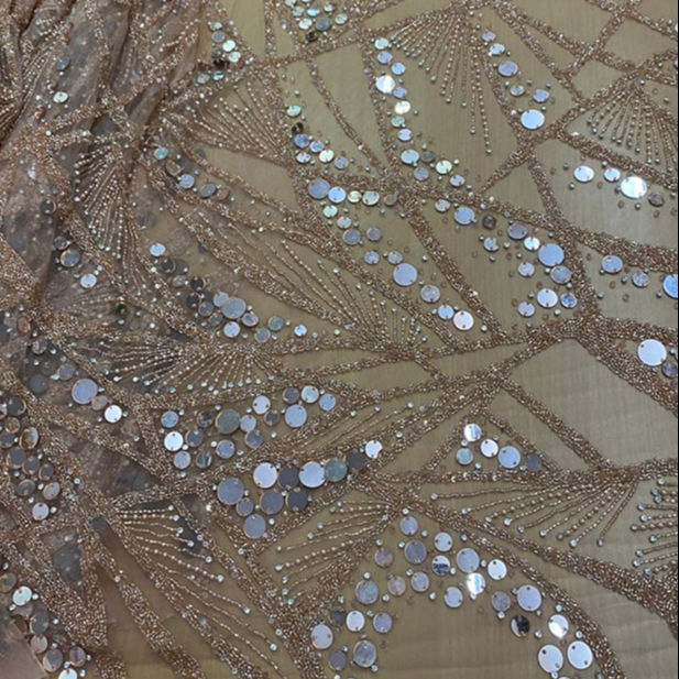 Miroir de luxe et perles de cristal et paillettes Design Nylon brodé tissu de dentelle perlée 2023 meilleures conceptions de vente