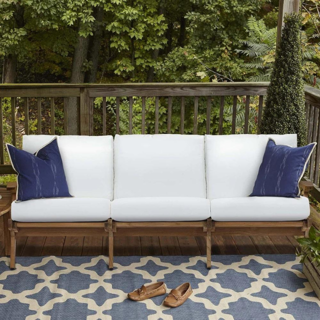 Canapé trois places de luxe au design moderne et contemporain, durable et confortable, avec structure en bois de teck