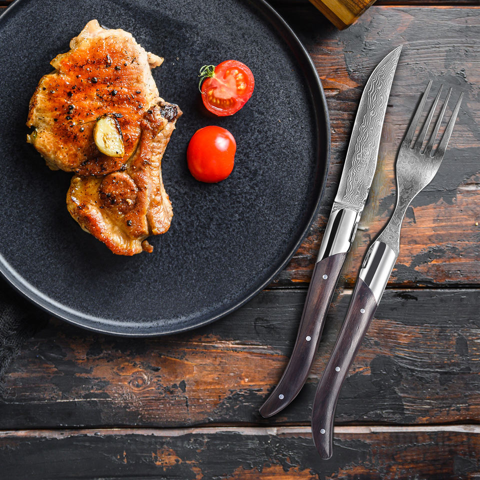 Product name:2 Pcs Cutlery Set Wooden Handle Damascus Steel Steak Knife and Fork