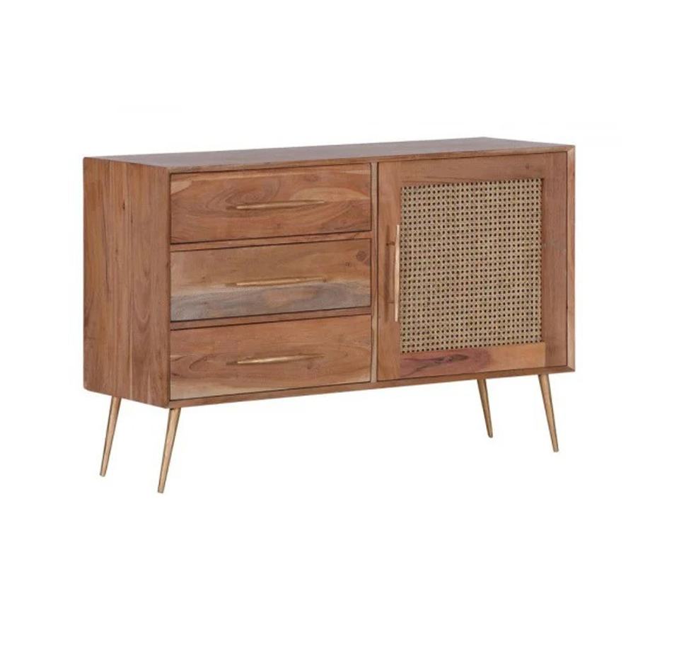 Meubles au design moderne de luxe, planche latérale en rotin massif en bois d'acacia, petite planche latérale ajustée en canne naturelle pour armoire de cuisine
