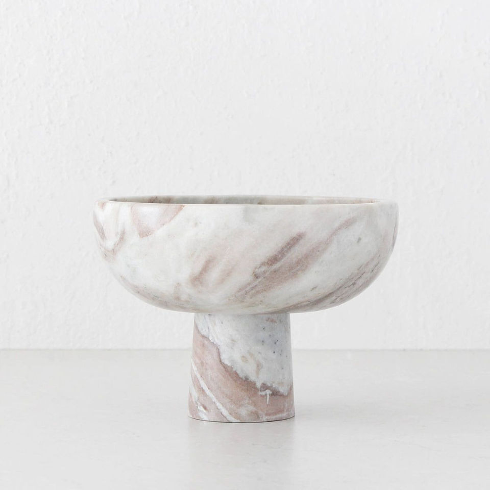 Design moderne de luxe bol à pied en marbre naturel élégant fait à la main en pierre veinée bol à fruits piédestal décor à la maison prix de gros