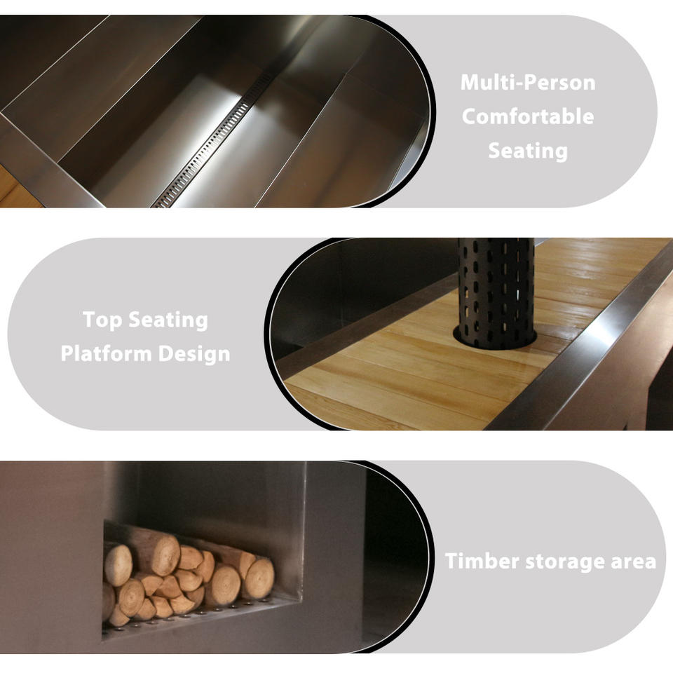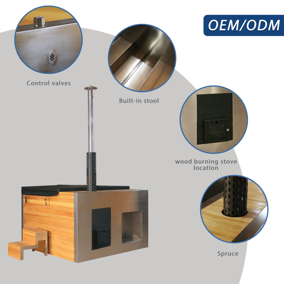 Bain à remous de luxe pour 4 personnes, design moderne, extérieur, en bois de pruche, avec revêtement en acier inoxydable, chauffé au bois, pour jardin, villa, relaxation et bien-être