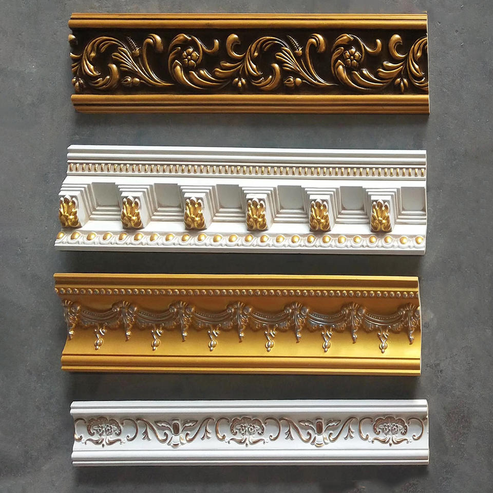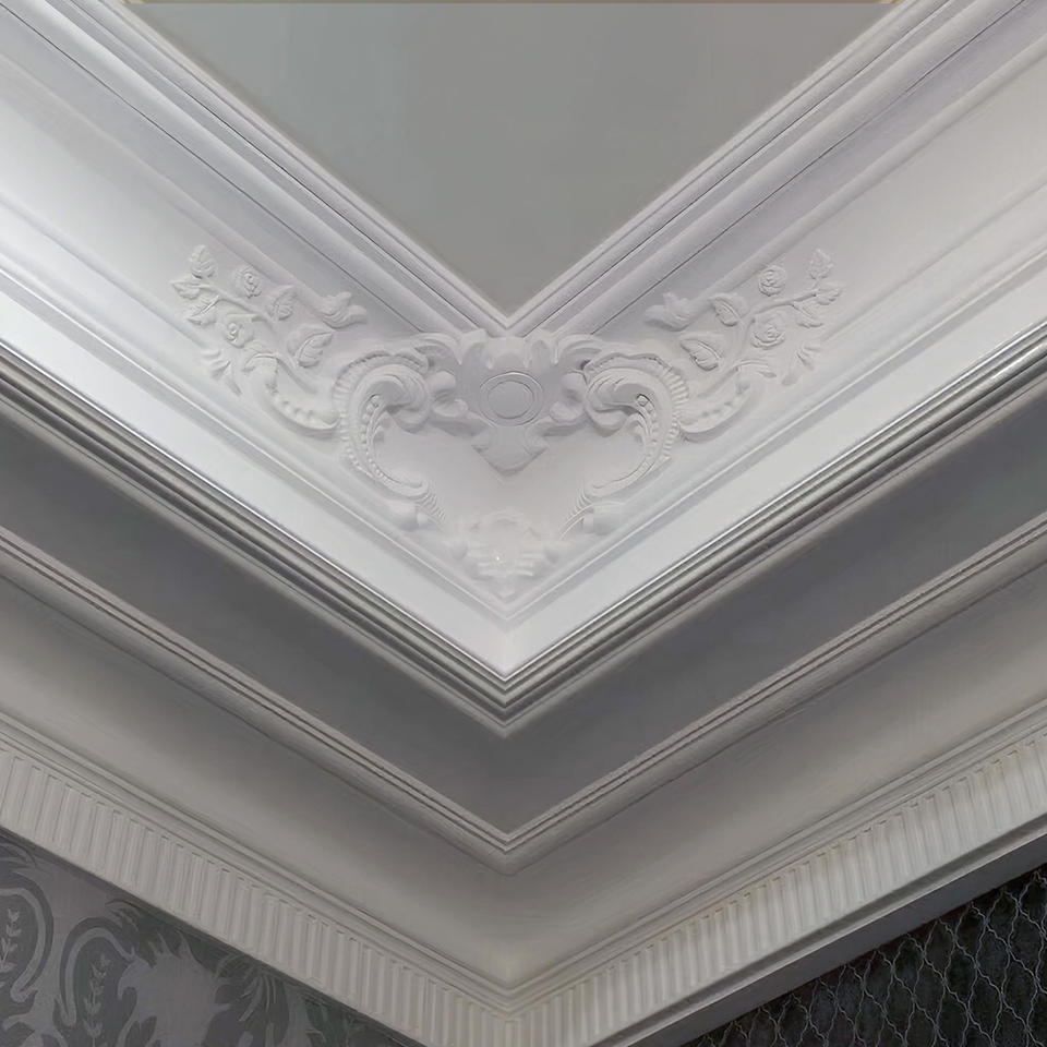 Corniche de plafond en polyuréthane de conception moderne de luxe, moulage d'angle sculpté en PU pour la décoration intérieure de villa et d'hôtel, léger