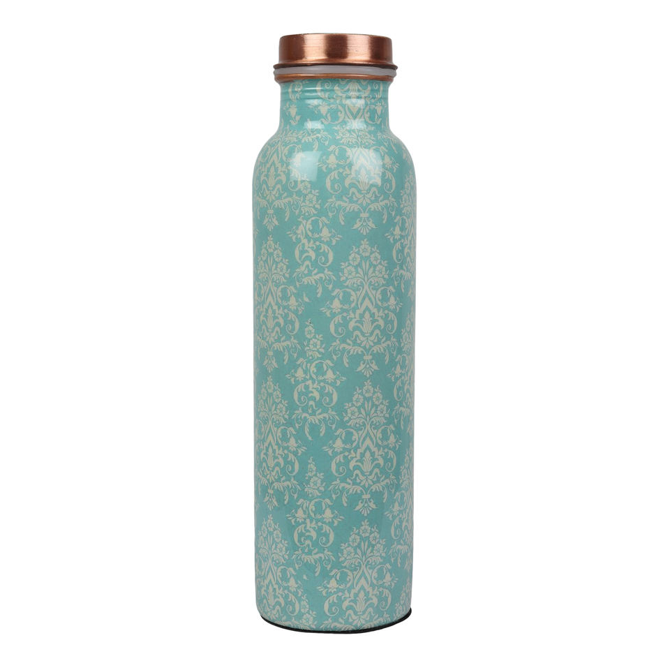 Bouteille d'eau en cuivre imprimée au design moderne de luxe avec couvercle pour le yoga et la salle de sport Bouteille d'eau en cuivre ayurvédique