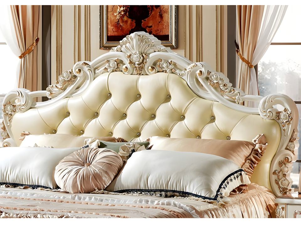 Ensemble de chambre à coucher royal en bois massif au design moderne de luxe, lit capitonné king size sculpté à la main avec rangement extensible, entrepôt domestique