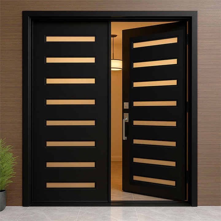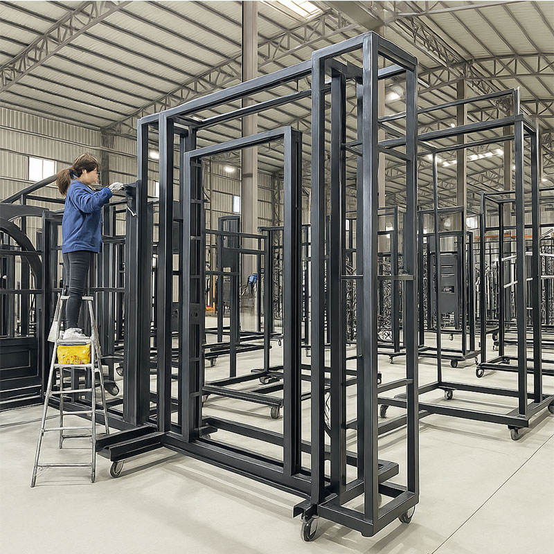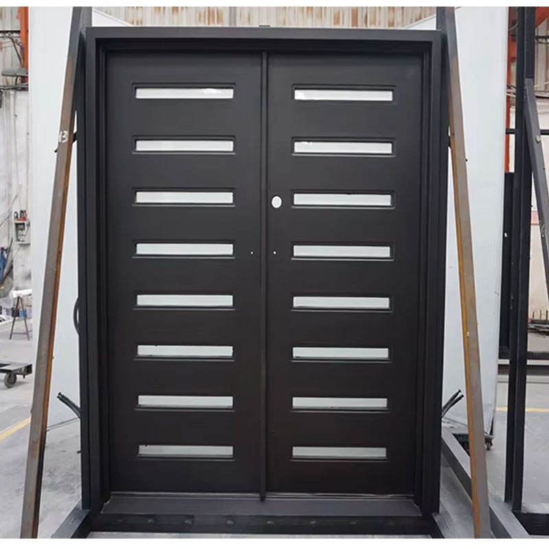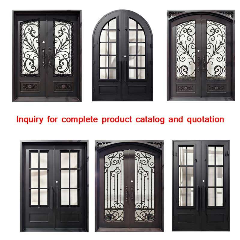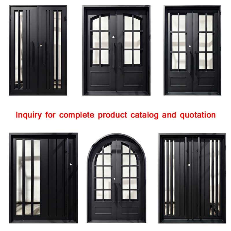 Portes en fer forgé à double entrée modernes et luxueuses, avec design élégant de grille en verre pour appartement, salon, extérieur, chambre à coucher, extérieur