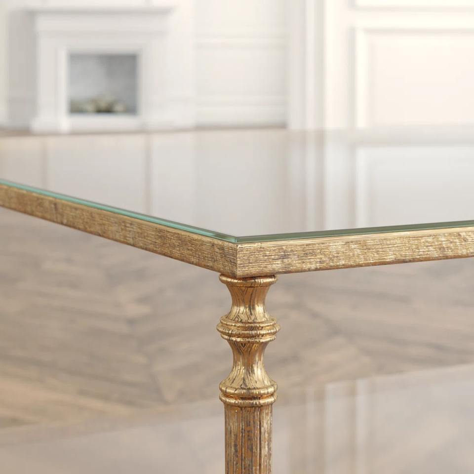 Table basse de salon moderne et luxueuse, écologique, en métal forgé à la main avec plateau en verre