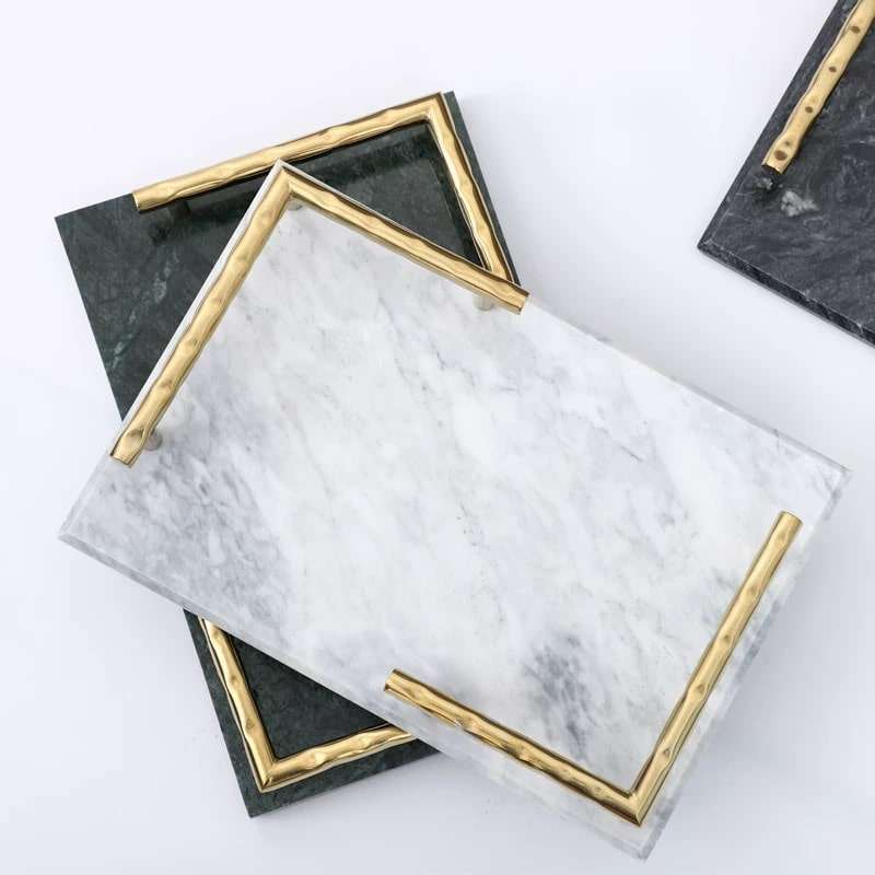 Plateau en marbre de luxe pour la décoration intérieure moderne, pour la maison et les hôtels, plateaux de service en pierre de marbre