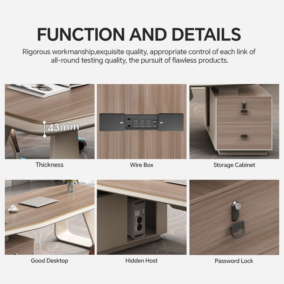 Bureau de luxe moderne en forme de L pour PDG bureau d'ombre en l Table de patron noire pour le directeur Table de bureau pièce maîtresse