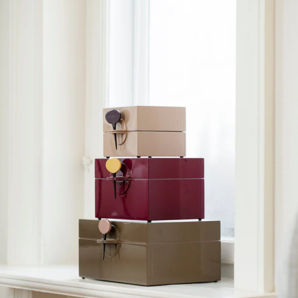 Boîte à bijoux en laque moderne de luxe avec logo personnalisé gravé, couleurs vibrantes, boîte en bois décorative pour cadeaux