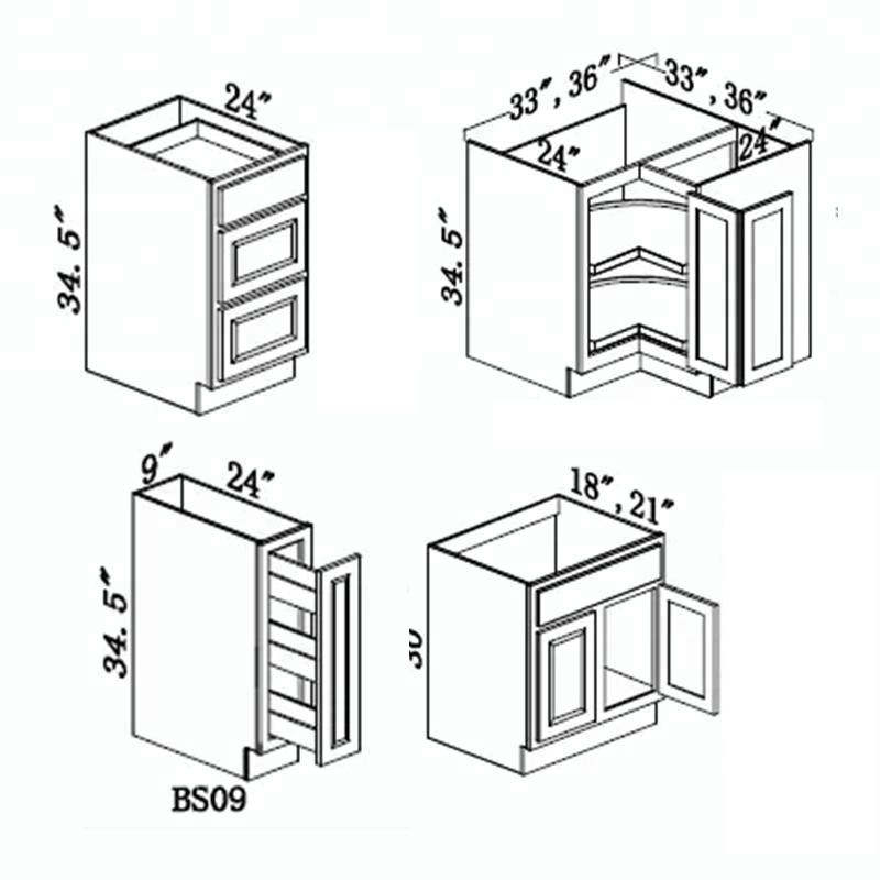 Accessoires:Dosseret, Tiroir panier, Coulisse, Robinet, Poignée et bouton, Charnière, Stockage à plateau tournant, Boîtes de riz, Cabinet de base d'évier, Coup de pied, Conteneur de déchets, Armoires de cuisine plans de travail