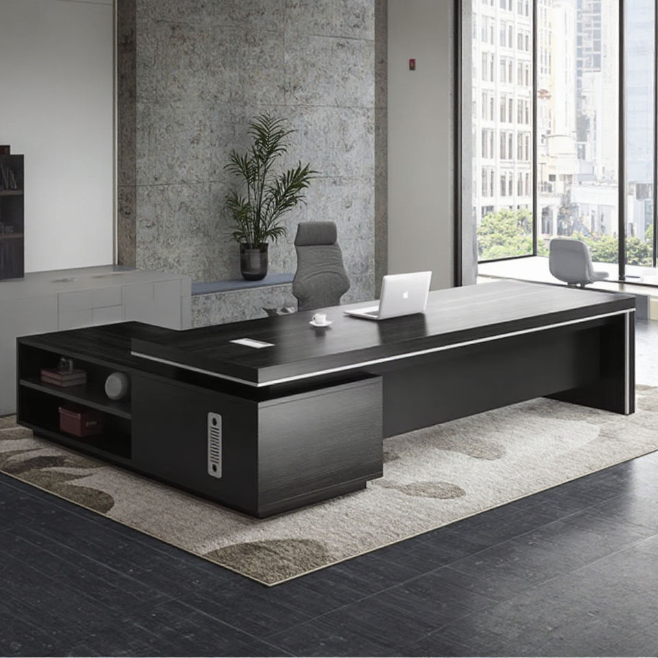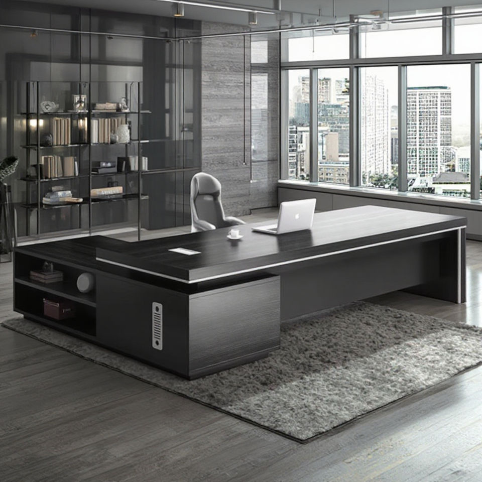 Combinaison de bureau et chaise modulaire de luxe en forme de L pour superviseur de bureau, avec ambiance studieuse, mobilier commercial en bois