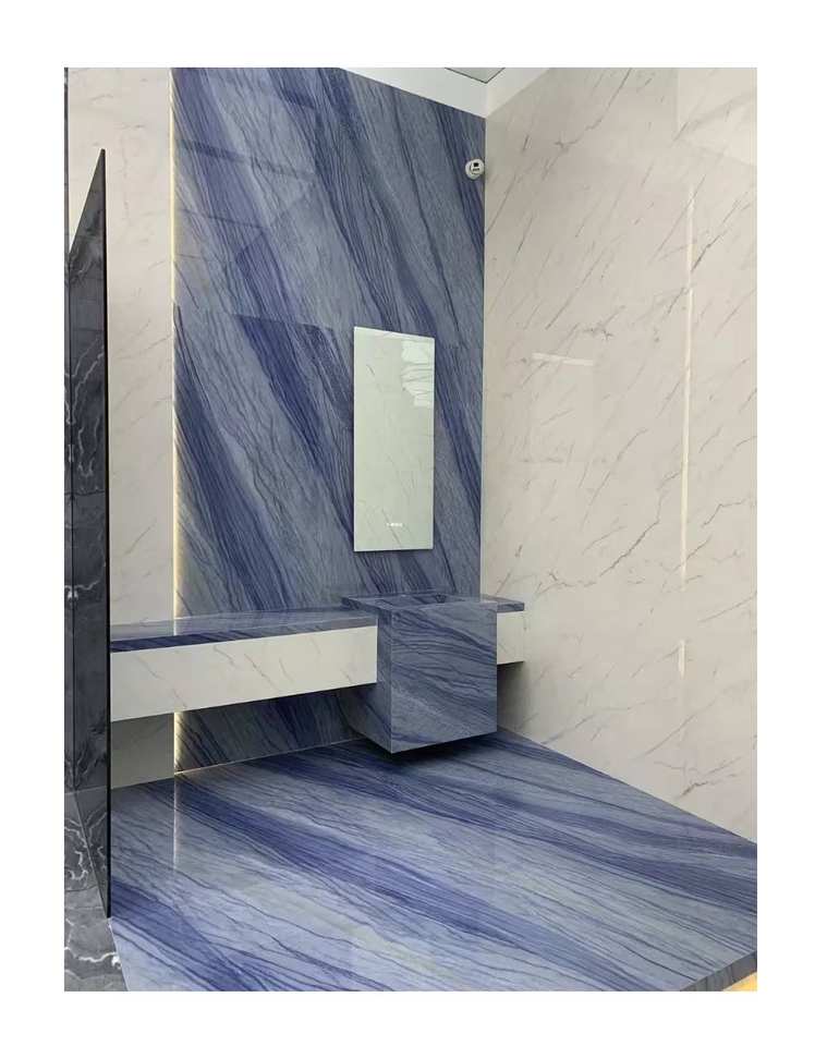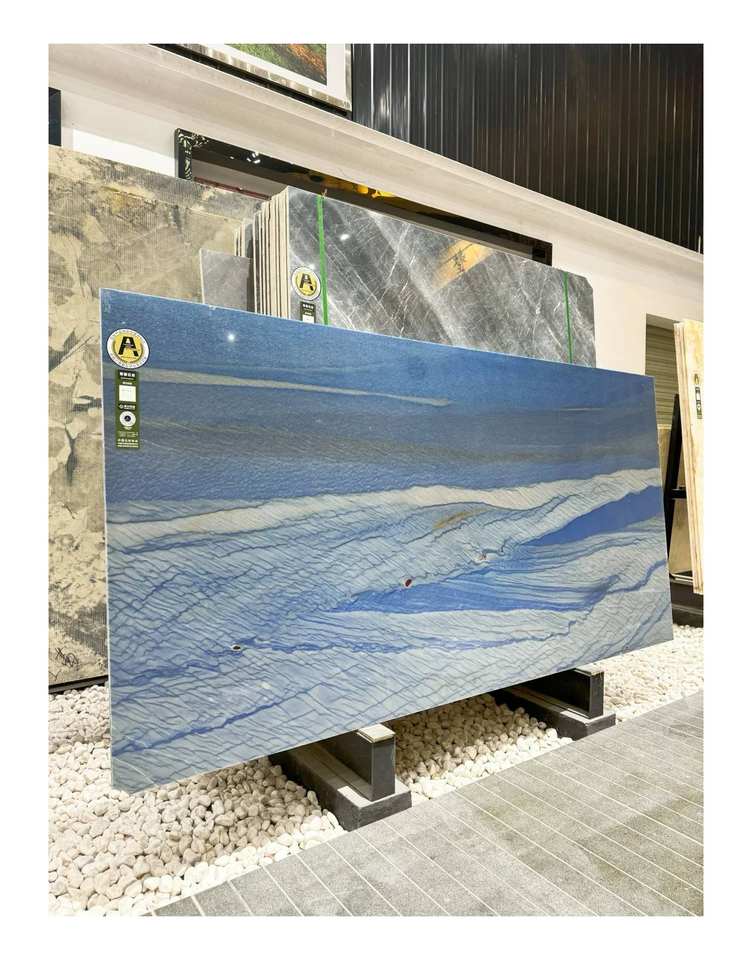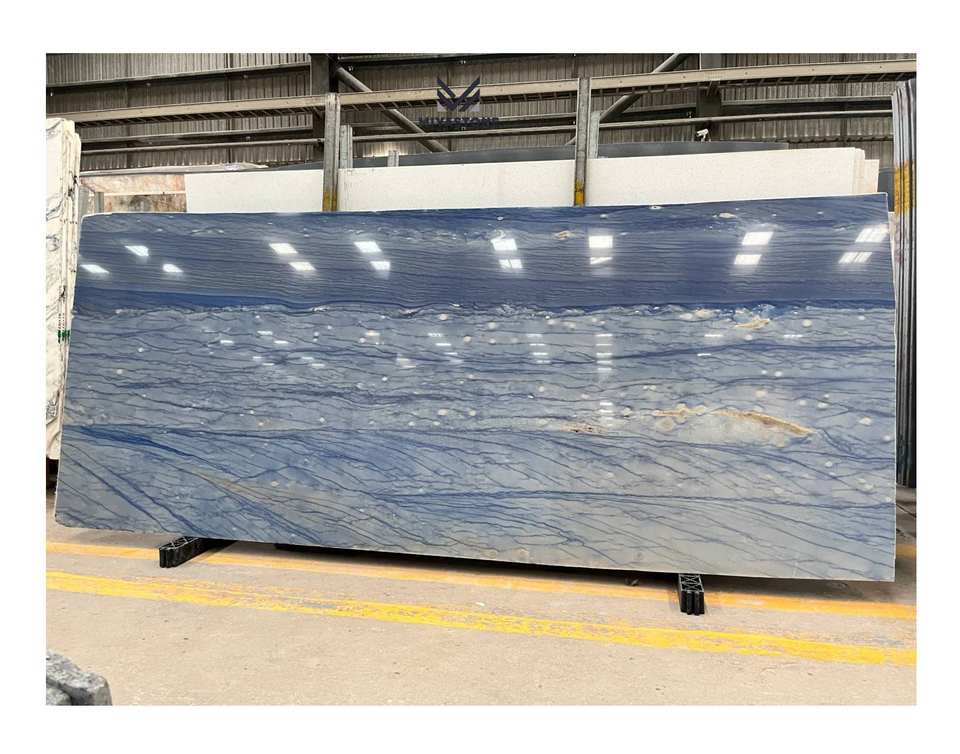 Marbre bleu Azul Macaubas de luxe moderne poli imperméable avec des veines blanches, dalle intérieure pour mur et plan de travail