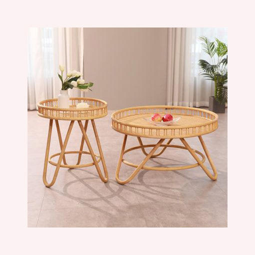 Table basse de luxe moderne en rotin et en bois fabriquée à la main, portable et élégante, parfaite pour les salons et salons contemporains