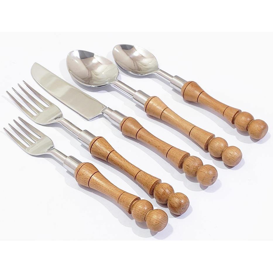 Couverts argentés modernes de luxe avec manche en bois Couverts en acier inoxydable écologiques pour enfants Mariages Présentoir suspendu