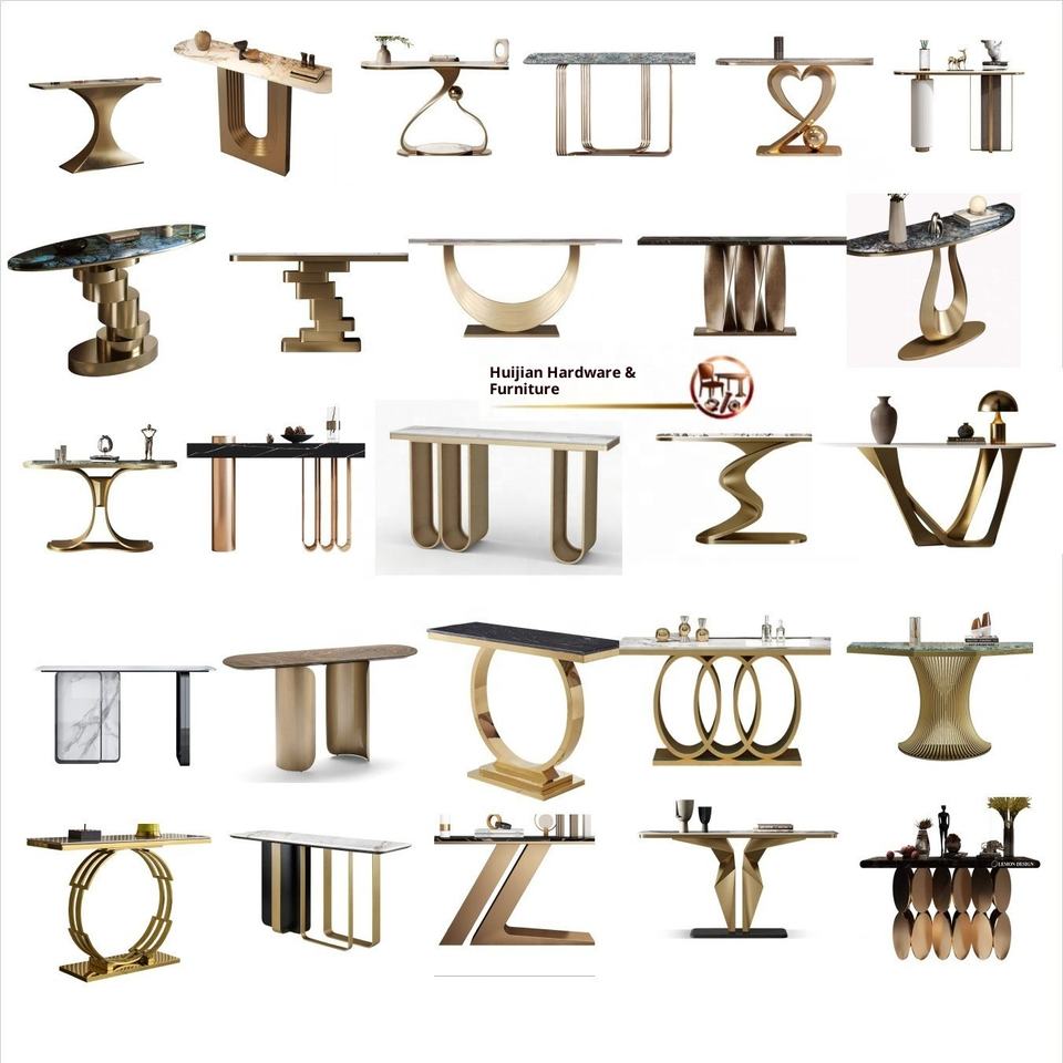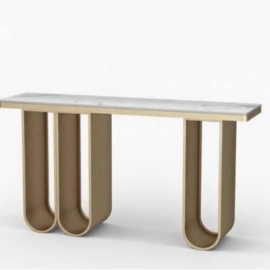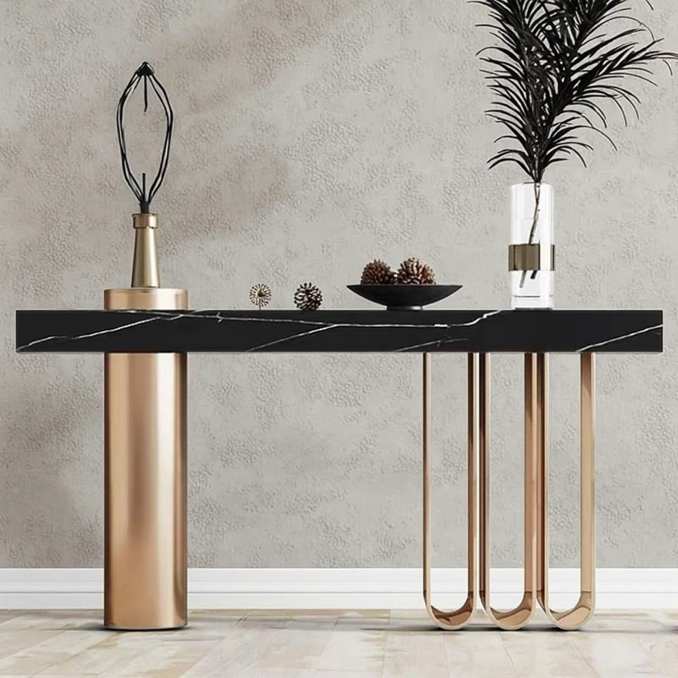 Table console moderne de luxe en bois massif, durable et stable, avec structure en acier inoxydable pour salon, entrée et couloir
