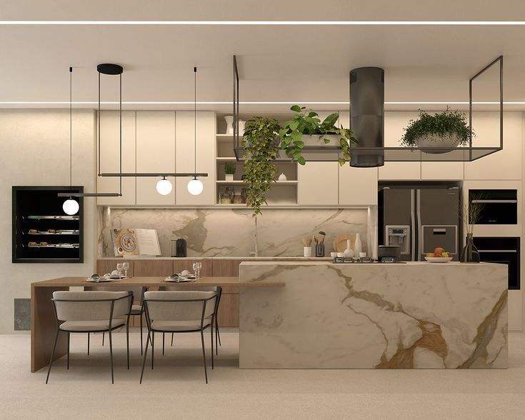 Armoires de cuisine plates modulaires sur mesure de style moderne de luxe avec îlots en marbre personnalisés