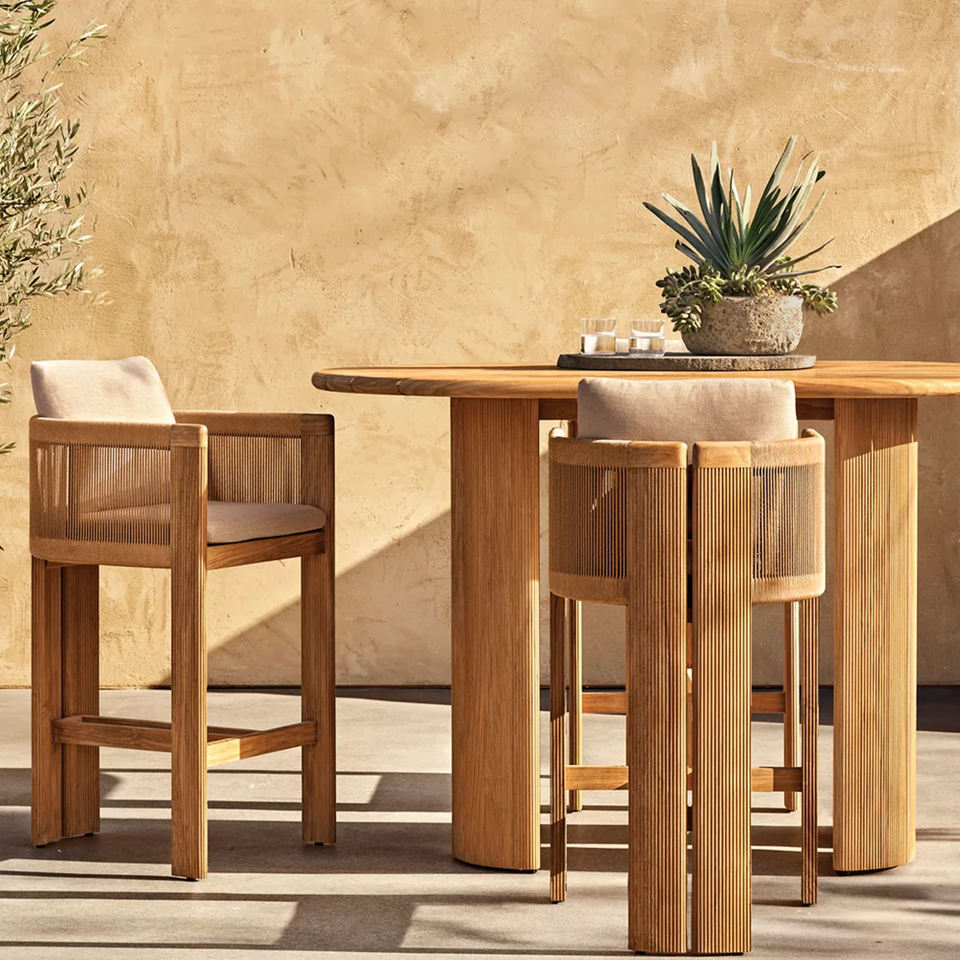 Ensemble de table de bar de jardin en teck et rotin moderne et luxueux, meubles d'extérieur durables pour la cour et le parc - Soria