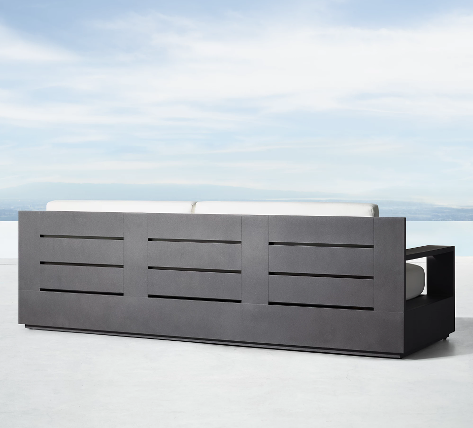 Canapé en aluminium avec tissu imperméable et foyer Ensemble canapé de patio villa moderne de luxe Marbella