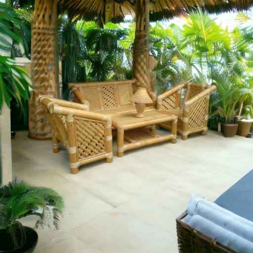 Luxury Modular Bamboo Sofa Set for Indoor and Outdoor for Living Room Garden Park Villa Courtyard Elegant Lounge Furniture