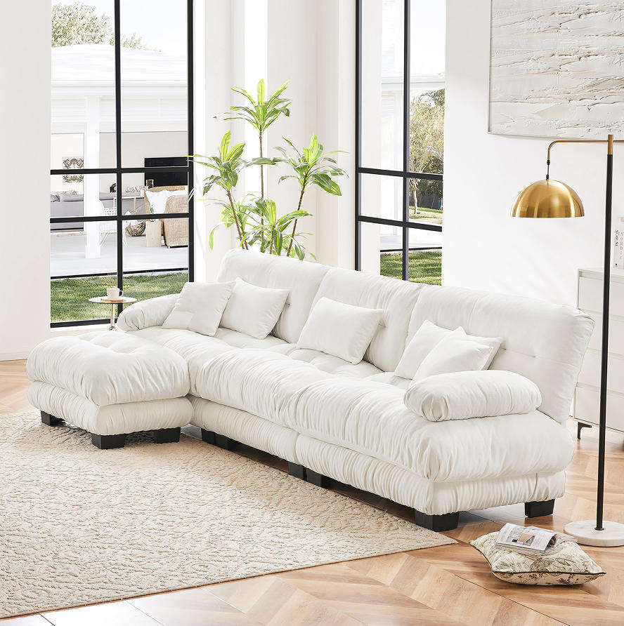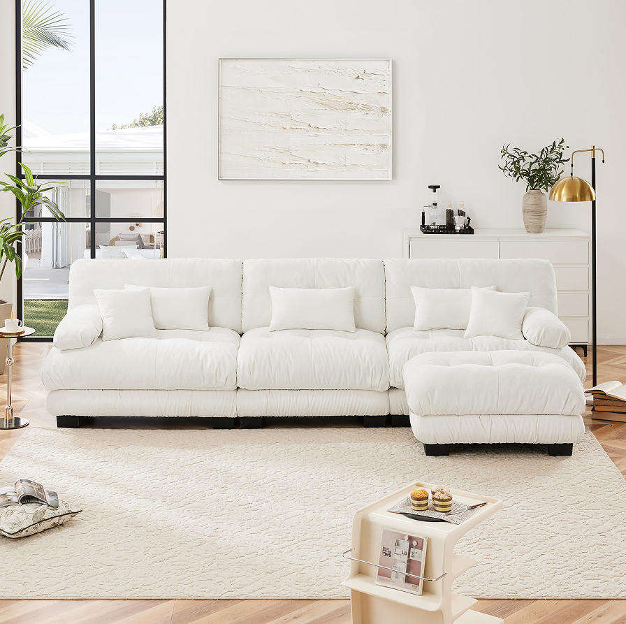Ensemble de canapés modulaires de luxe, canapé carré surdimensionné en tissu avec siège profond et ottoman convertible pour salon d'appartement