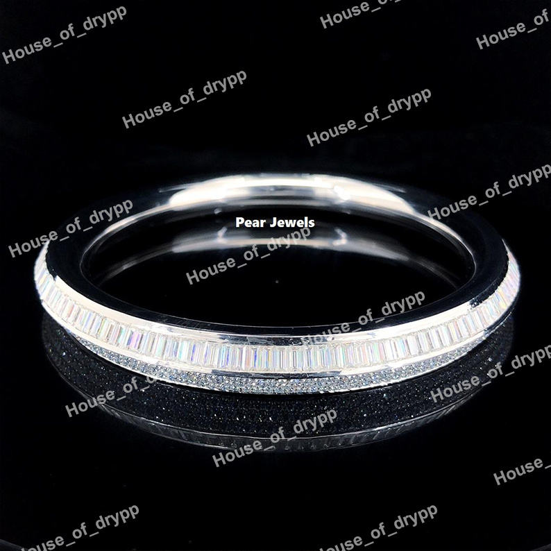 Bracelet jonc de luxe en moissanite et diamants, finition acier inoxydable, avec diamants taille baguette et taille ronde pour un bijou élégant