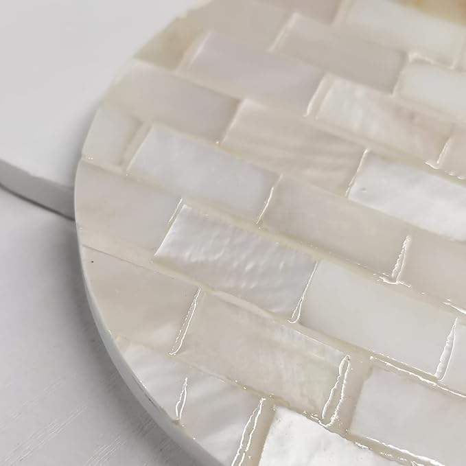 Luxury Mother of Pearl Coasters with Wooden Holder Stylish and Sustainable Drink Coasters for Coffee Table and Bar Decor
