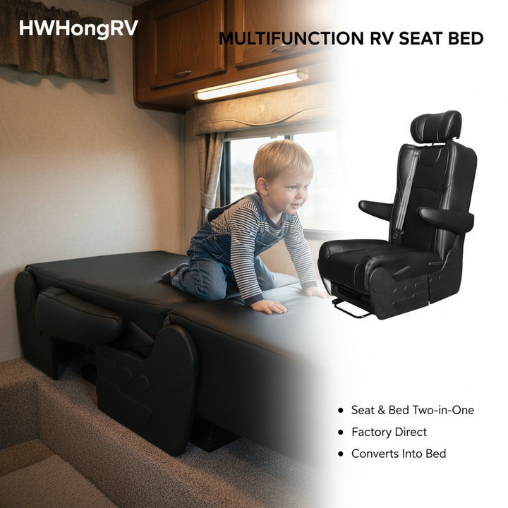 Siège pliable en cuir Nappa de luxe pour camping-car, convertible en lit plat avec ceinture de sécurité à 3 points pour camping-car, fourgon aménagé, intérieur de camping-car