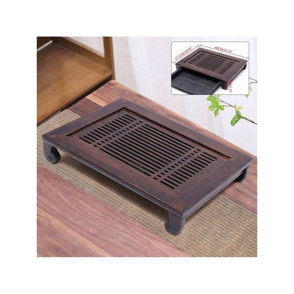 Plateau à thé de Kung Fu en bambou naturel de luxe Table de service Stockage de l'eau Drainage Artisanat en bambou Plateau de service de table à thé de qualité supérieure