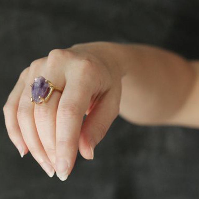 Anneaux de forme inégale de pierres précieuses naturelles de luxe à facettes de haute qualité améthyste violet Quartz Jade anneaux en laiton femmes bijoux de mode